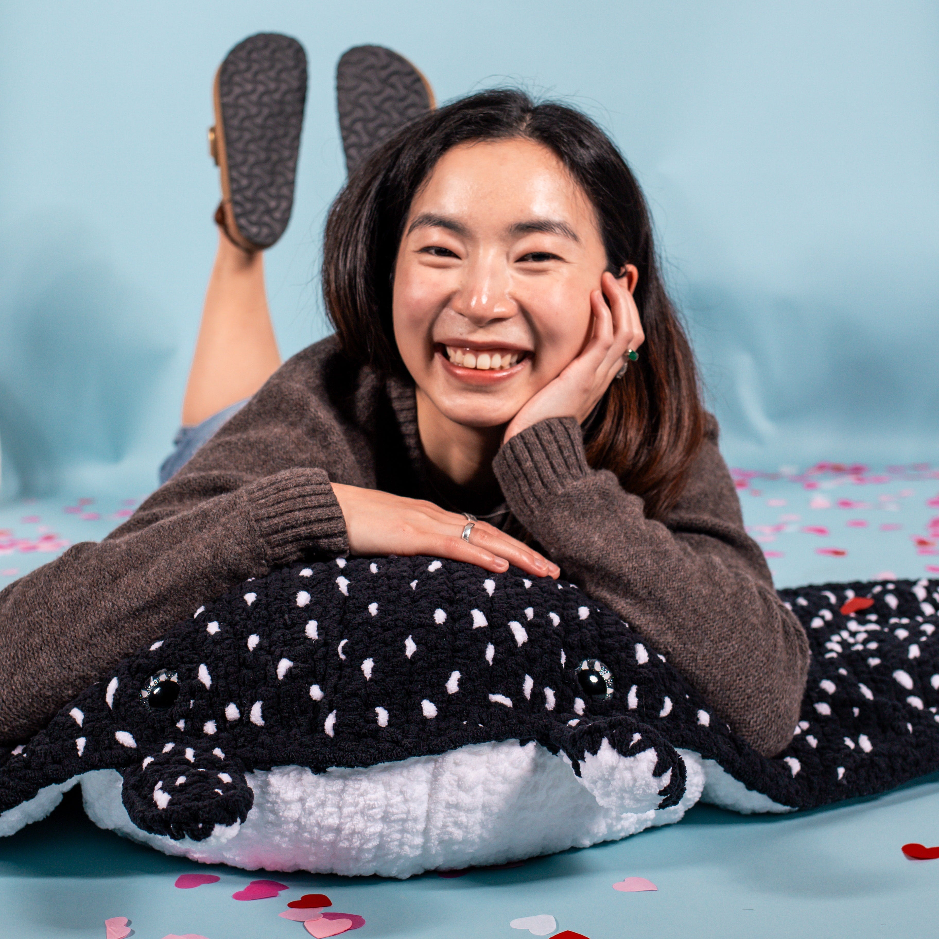 Crafted with 8 skeins of yarn, this delectable new friend is the perfect jaw-dropping piece to hang in your home or the perfect cuddle bug for any occasion.