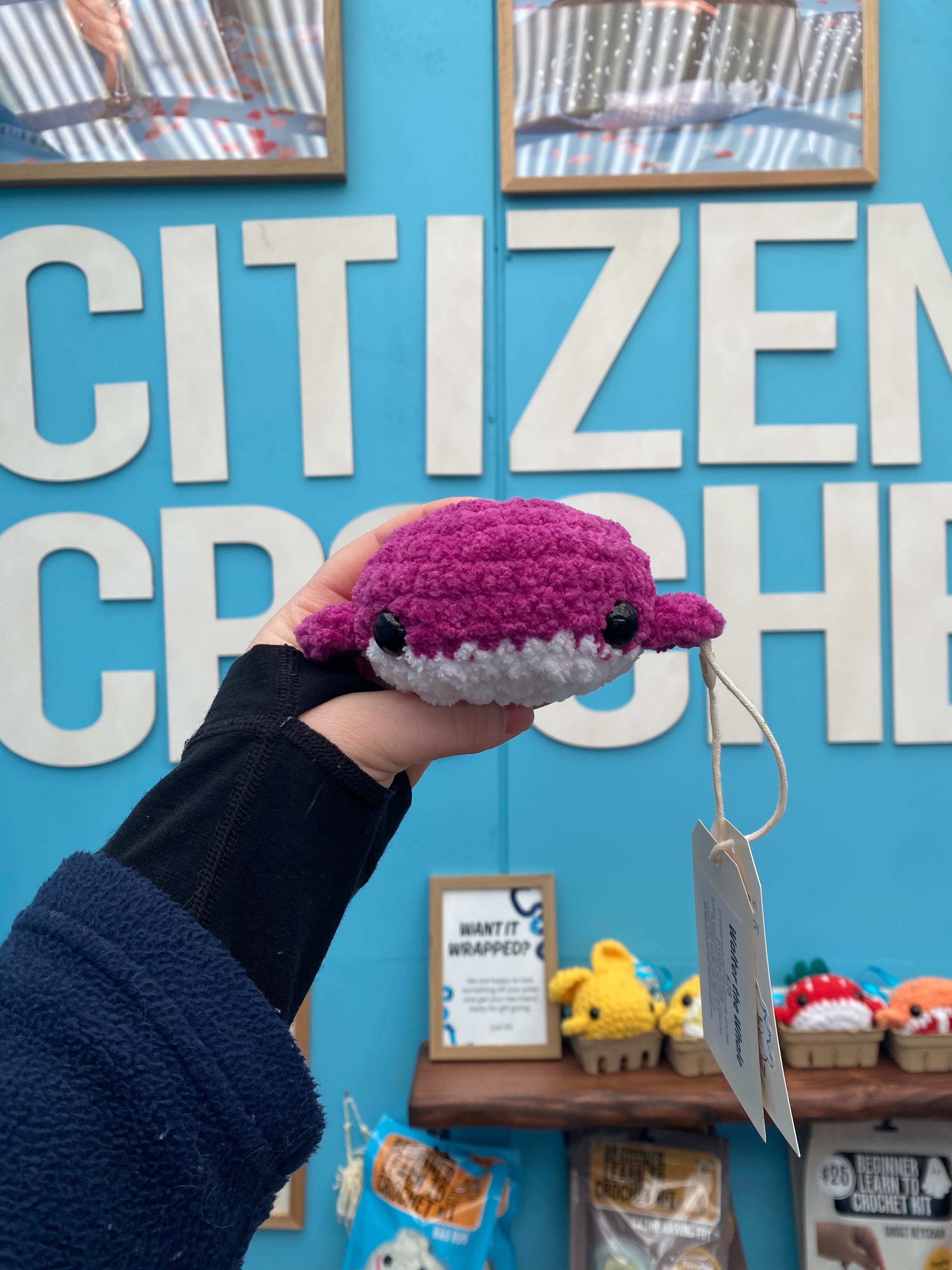 Meet Walter the Whale, a handmade plushie designed to bring joy, comfort, and a touch of whimsy to anyone’s day. Whether for snuggling, decorating a cozy nook, or joining in playful adventures, Walter is a charming companion for children, collectors, and plush lovers alike. Each whale is carefully crocheted in the USA by skilled artisans, ensuring a one-of-a-kind friend full of personality and charm.